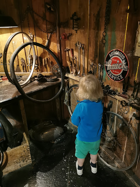 Toiveissamme oli saada lapsi nukahtamaan päiväunille kävelymatkan ajaksi, mutta se jäi turhaksi haaveeksi. Muutenkin päiväunia tuolloin vältellyt taapero yhdistettynä paikalliseen penkkaripäivään tööttäävine rekkoineen ei ollut ihan se toimivin yhdistelmä. Niinpä siis kuluttelimme aikaa Junibackenin pihassa, kun odotimme sisäänpääsyaikaamme itse museoon.